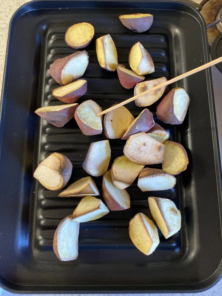 長芋にオリーブオイル塗ってココプレで焼いて岩塩かけて食べるのもおすすめです。ししとう、アスパラ、きのこ類も美味しいですのでお試しくださいませ❤️