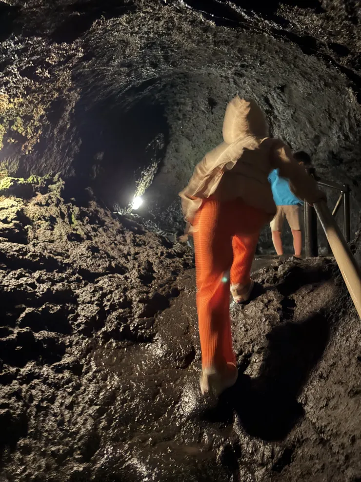 山中湖近くの鳴沢氷穴にも行ってきました。こっちは寒かったです。子どもでもかがまないと進まない洞窟に大興奮でした。