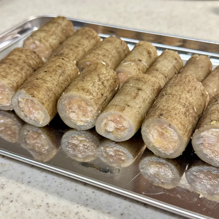 長葱を入れてごぼうにつめて、