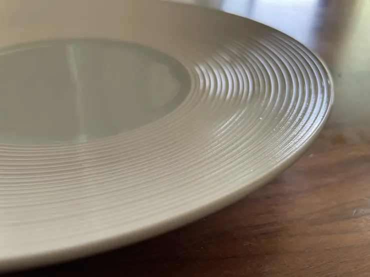 写真だとわかりにくいですが、縁にむかって斜めになってるのでパスタなんかに使いやすそうです。