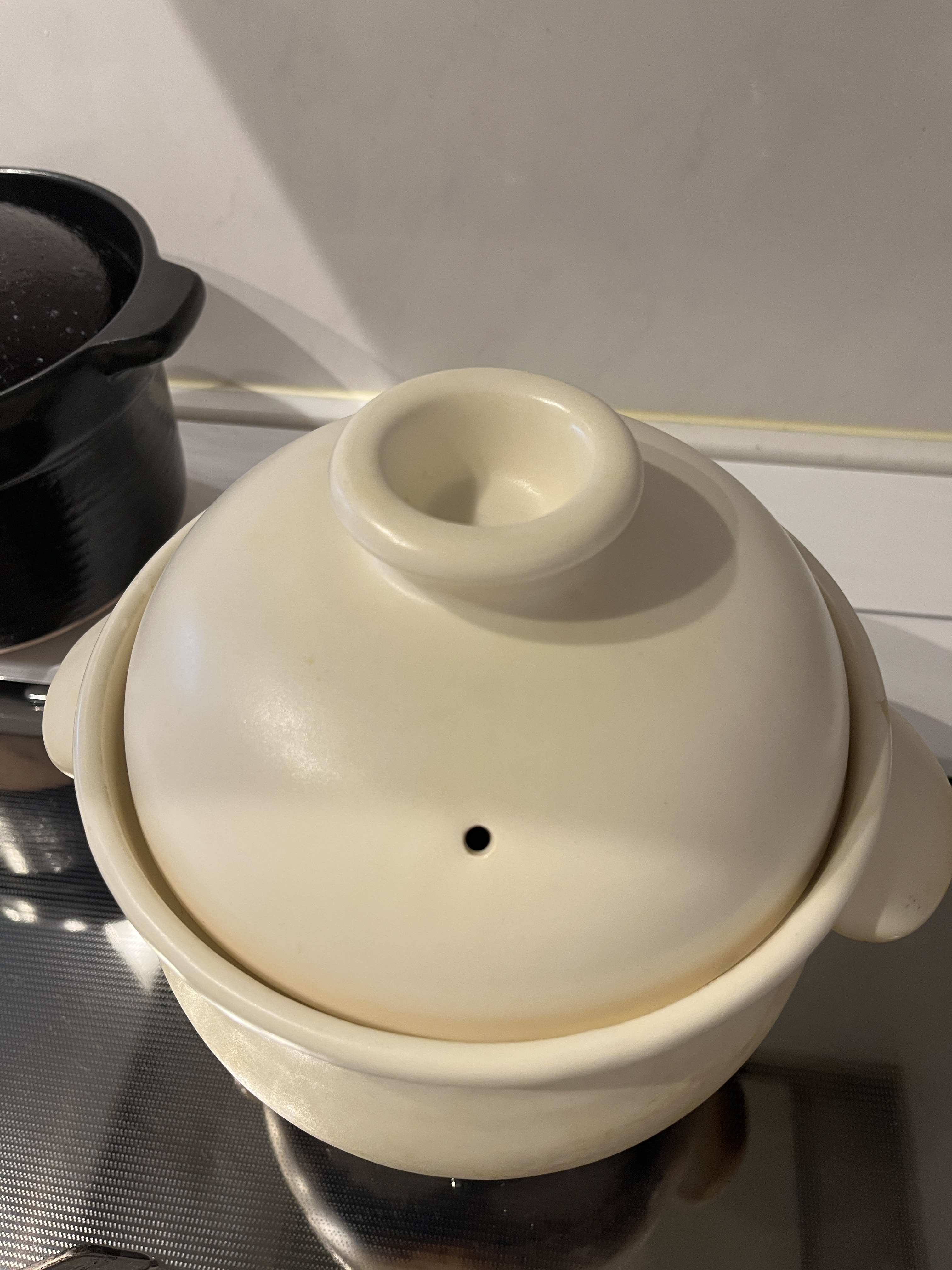 まだ半年しか使っていない白土鍋ちゃんを捨てるにも捨てられなく、この自動調理で反応するなら、この子も使えるかも🍚と試してみました。