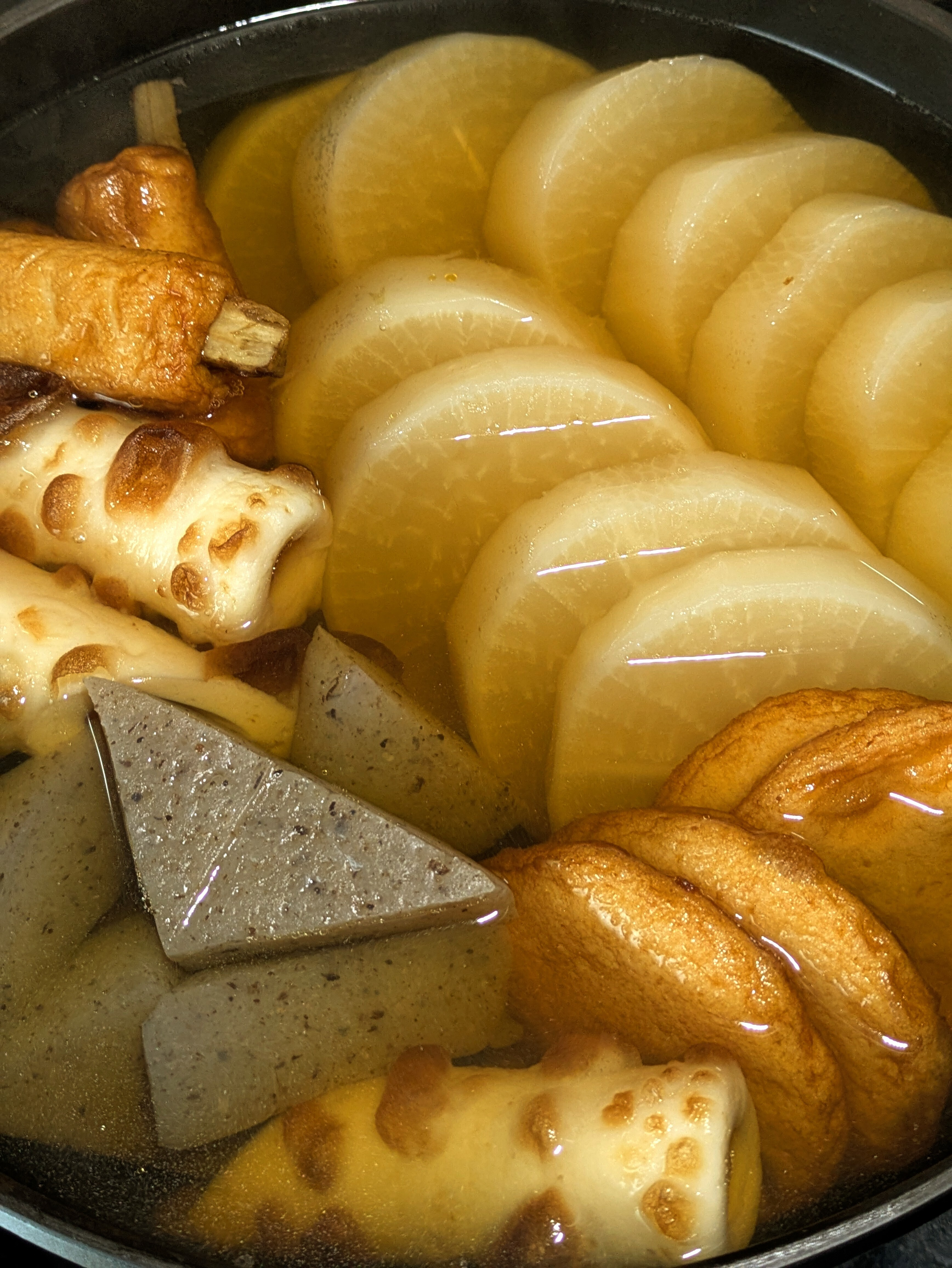投稿を表示澄んだだしですね!いやいやおでん手間ひまかかりますよね、だしやら大根を研ぎ汁で下茹でするとか、具材の仕込みとか~😆