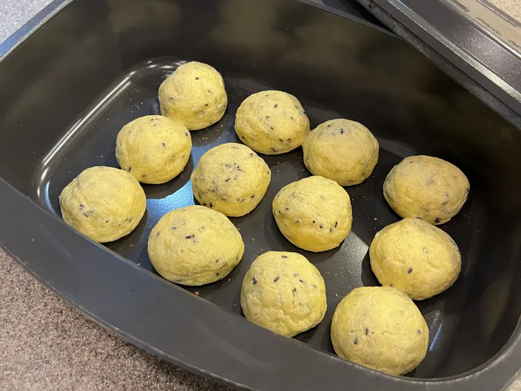 白玉粉と粉チーズが主な生地の材料で、材料と工程が少なく短時間で簡単に作れました😊