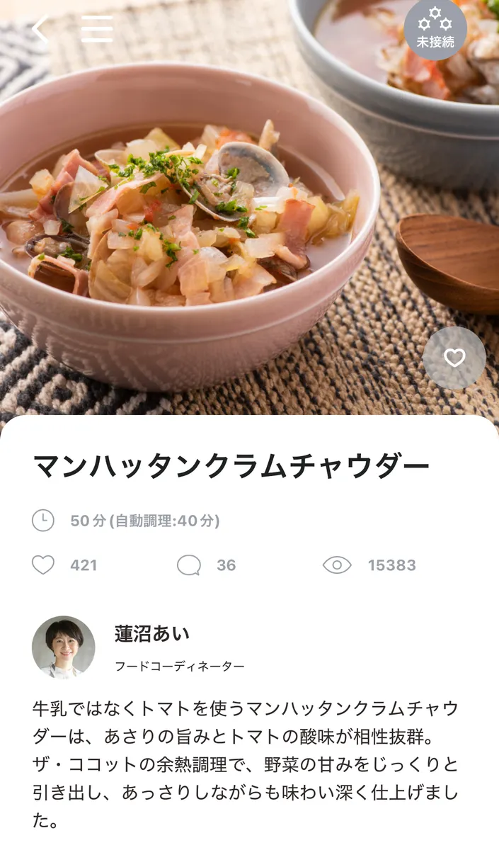 トップ > 暮らしの1枚 > 今日のひとさら > チャウダーとパテ 23 2025/10/29 08:00 チャウダーとパテ 寒くなってきたので、マンハッタンクラムチャウダーです。エルブドプロバンスを仕上げにかけて、パテドカンパーニュと一緒に。 いいね 共有する 共有する X facebook LINE リンクをコピー コメントする 4 件の返信 (新着順) ミュートしたユーザーの投稿です。 投稿を表示 ミック 2025/10/31 07:22 おしゃれで美味しそうですね~ うまみもたっぷり体も温まりますね いいね 返信する ミュートしたユーザーの投稿です。 投稿を表示 23 2025/10/31 07:58 ミック ありがとうございます。食卓に赤い色が入るととっても美味しそうで元気が出るような気がして作りました。あっさりで温かくて美味しかったです。 いいね 返信する ミュートしたユーザーの投稿です。 投稿を表示 Delico 2025/10/30 21:53 いつもレストラン🍽️のようなおしゃれな料理にうっとり😍 エルバドプロバンス?ってなんですか? プロバンス地方のプロバンスしか知りません💦🤭 いいね 返信する ミュートしたユーザーの投稿です。 投稿を表示 だがね 2025/10/29 14:07 寒くなるとまた楽しみなお料理が色々ありますね(^^♪おしゃれです いいね 返信する ミュートしたユーザーの投稿です。 投稿を表示 23 2025/10/29 22:38 だがね ありがとうございます。あったかいスープが美味しい季節です。 いいね 返信する ミュートしたユーザーの投稿です。 投稿を表示 かが@リンナイコミュニティマネージャー 2025/10/29 13:57 急に寒くなりましたね…今日の名古屋は最低気温9℃だそうで。。。 そう思ってたらお昼の時間は暖かくてまたびっくりです。 あったかいクラムチャウダー食べたいです!! いいね 返信する ミュートしたユーザーの投稿です。 投稿を表示 23 2025/10/29 22:39 かが@リンナイコミュニティマネージャー ありがとうございます。クラムチャウダー、アサリのおだしが美味しかったです。 いいね 返信する
