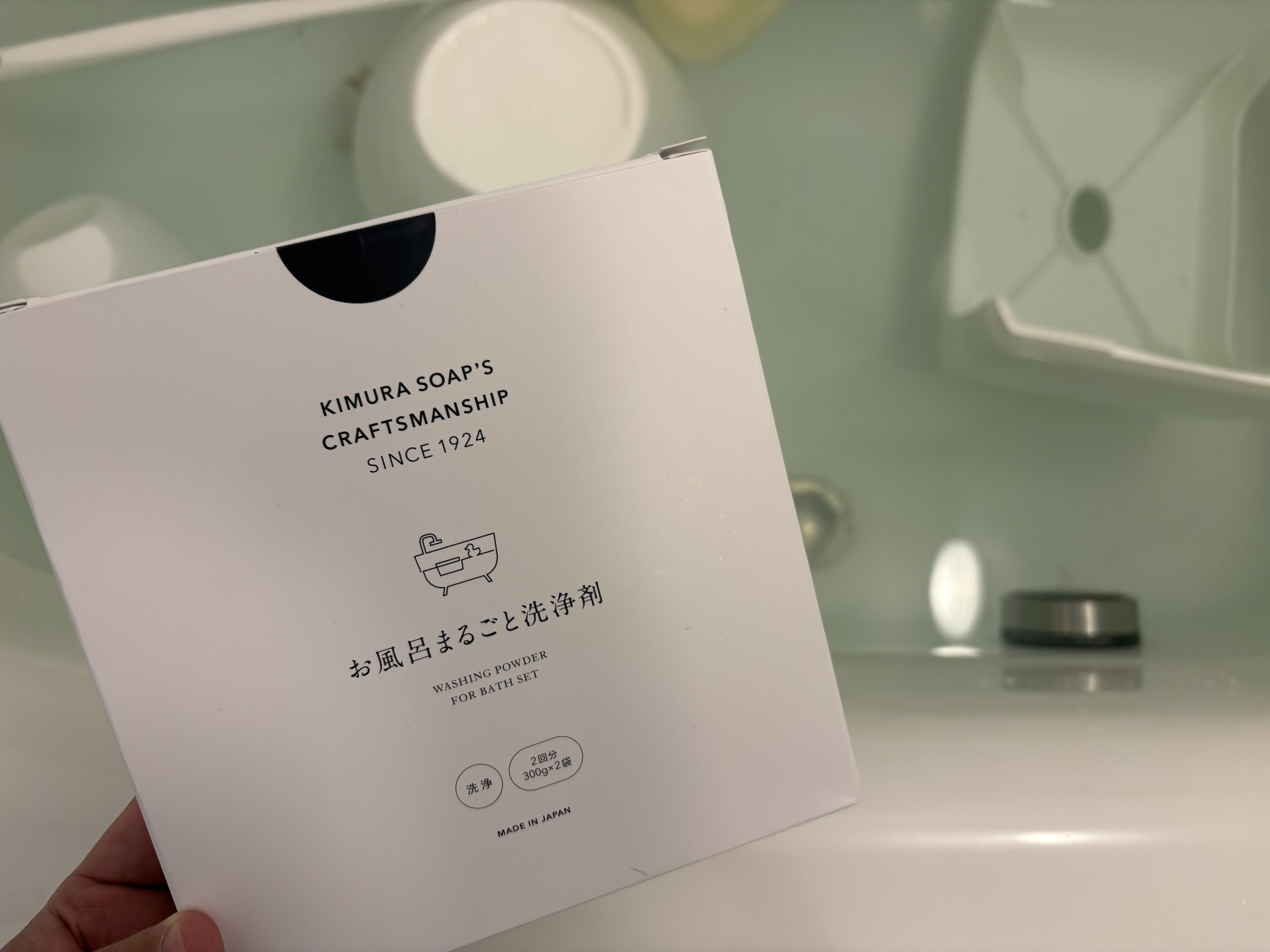 お風呂のお湯に溶かして一晩つけおき、朝に汚れを落として終了です!色んな汚れが浮いてくるのでびっくりします。洗面器やイスの汚れが取れてツルツルになるのでとっても気持ちいいです✨