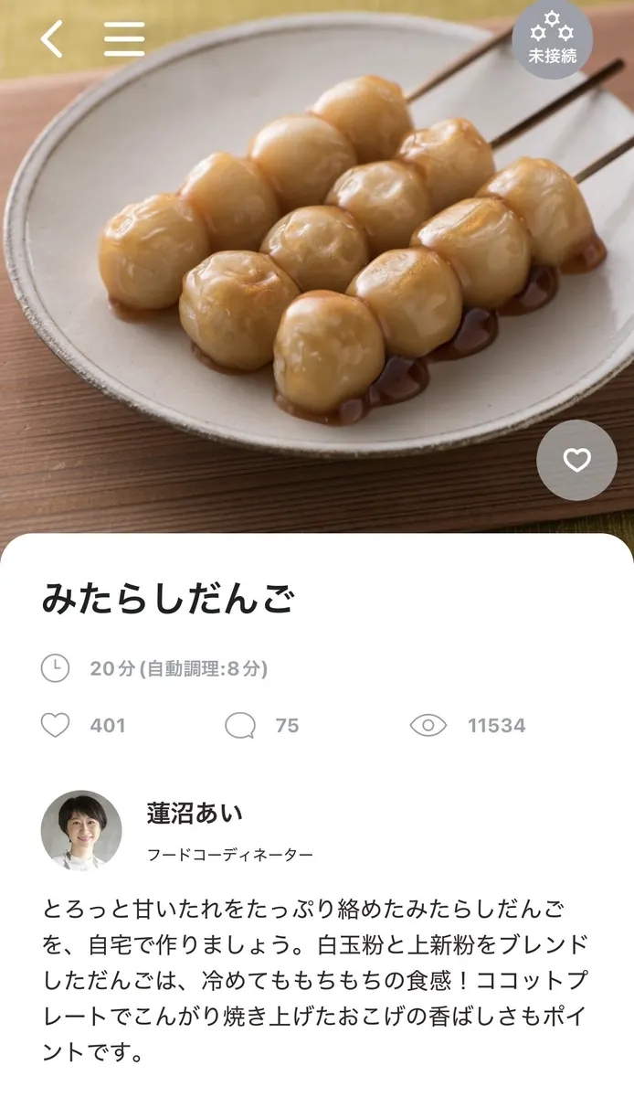 投稿を表示自動調理でお団子が焼けるんですね!お気に入りに入れました。