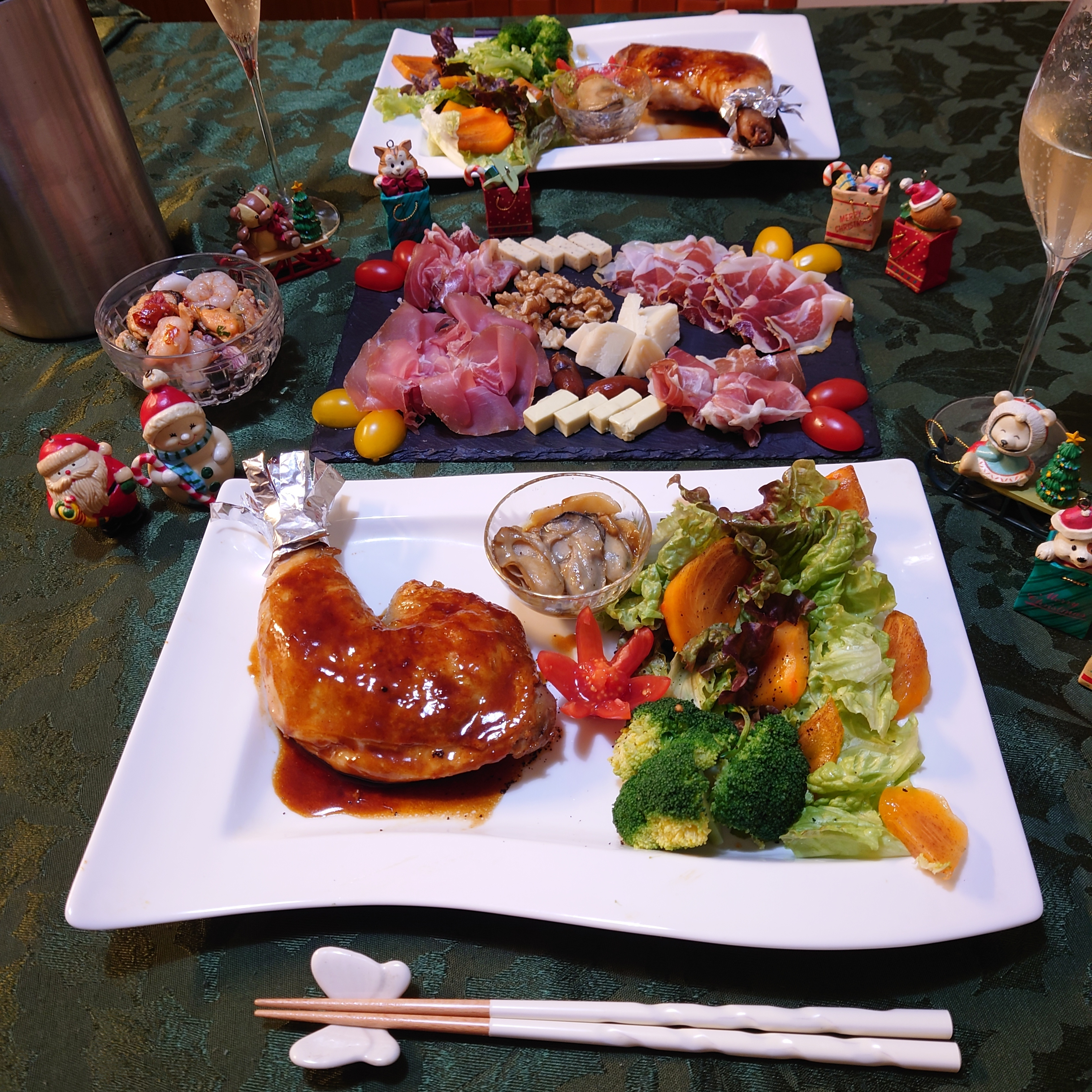投稿を表示ローストチキンにハム。え!牡蠣🦪に柿に海老🦐‥素敵なクリスマス🎄ですね。思わずビョーンと見させていただきました。ありがとうございます。目👀でも美味しいです。