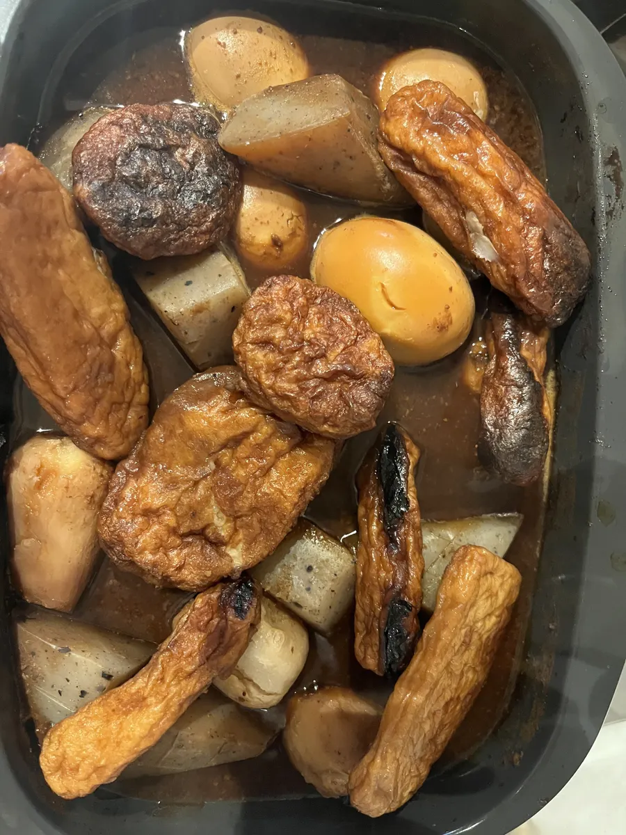 投稿を表示🍢同じく、私もやってしまいました。おでんは沢山作りたくなるもの(特にお大根)です。煮汁が被っていないところがしっかり焦げちゃうのですよね。