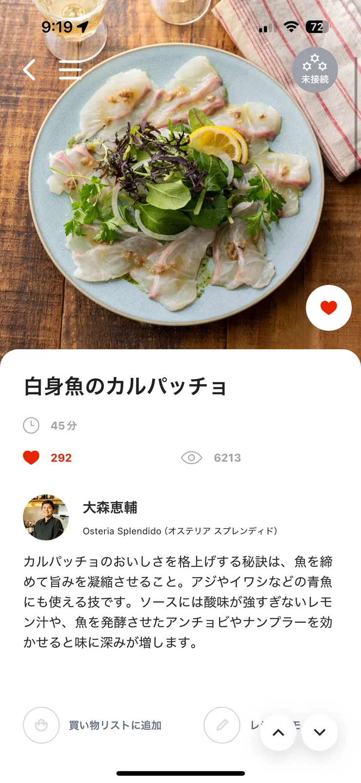 投稿を表示美味しそうなカルパッチョですね