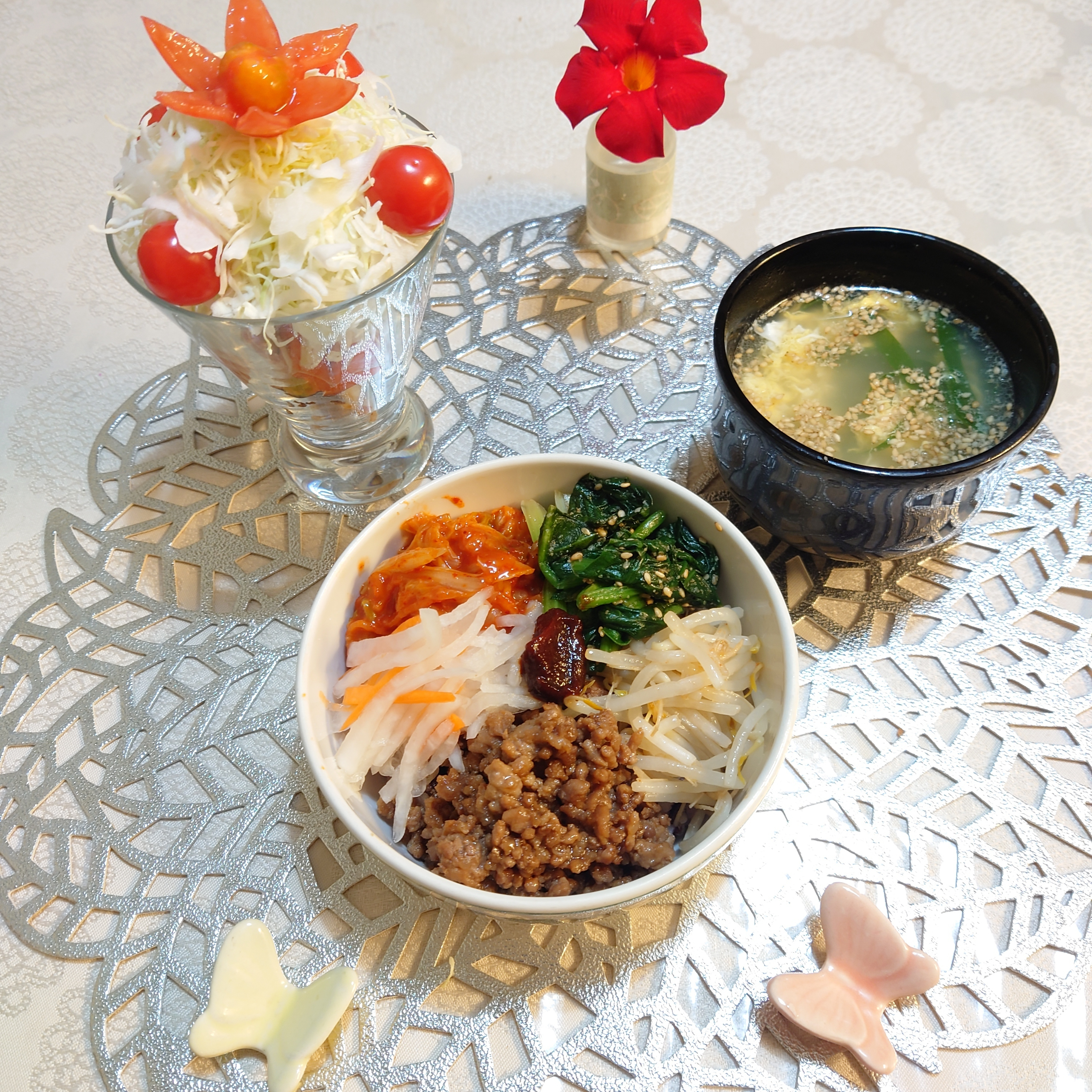 投稿を表示ビビンバ!にスープ。サラダパフェまである!本当にお野菜たっぷりですね!