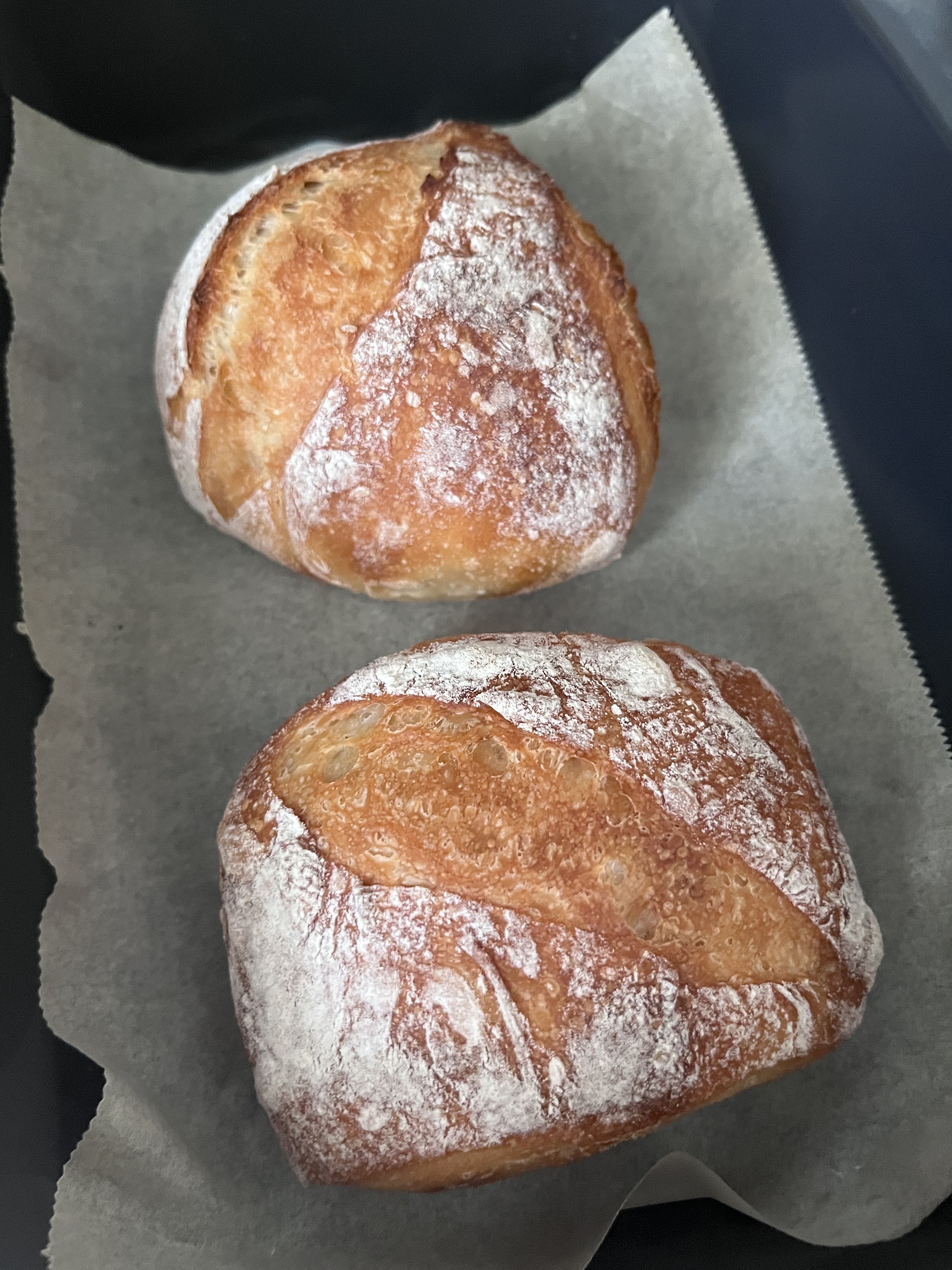 レシピは富澤商店のレシピで、冷蔵庫でオーバーナイト発酵をしました😊