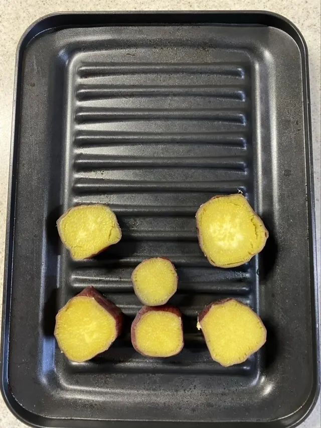 さつまいもは蒸してから輪切りにしてココプレで焼くだけ。