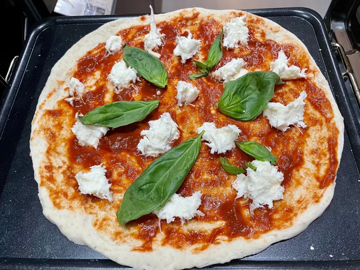マルゲリータにのせるモッツァレラは、ちぎってのせるようです(YouTube 参考にしました)