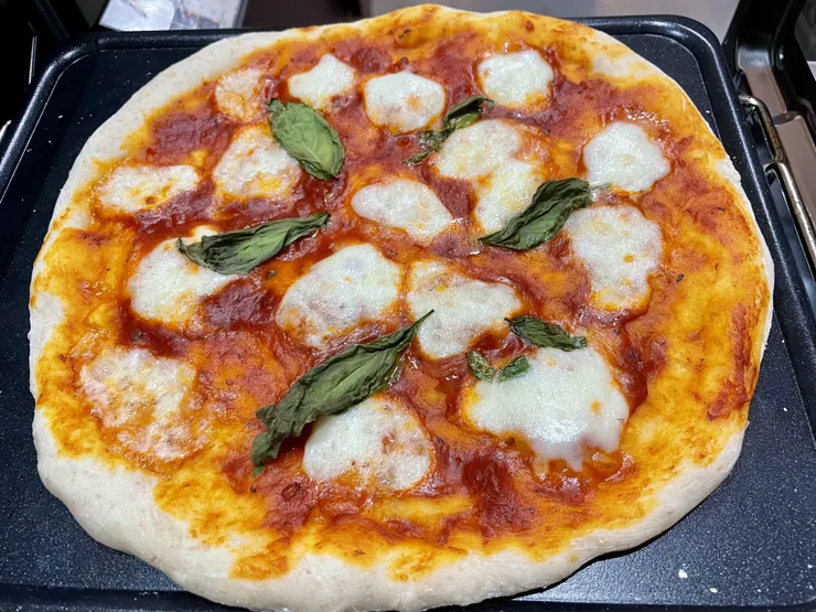 写真はピザ2枚目で、庫内が熱いため自動調理せずにタイマー5分で焼いたものです。こっちの方が焼き加減がいい感じ😆