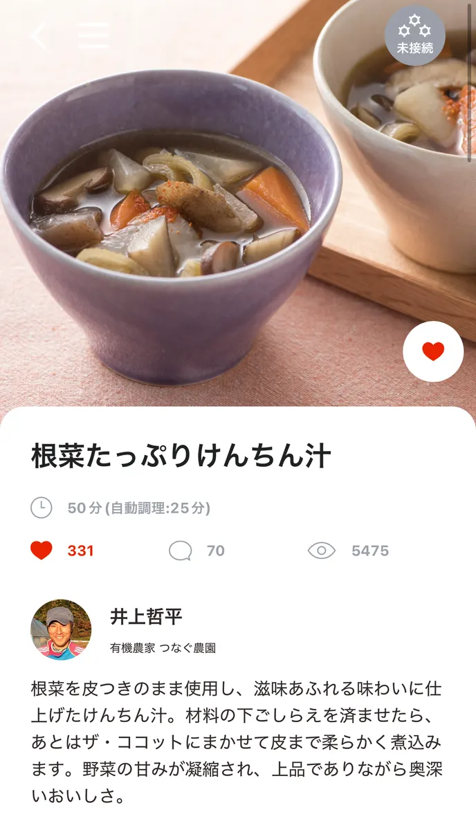トップ > 暮らしの1枚 > 暮らしの1枚 > 根野菜たっぷりのけんちん汁 Delico 2025/11/29 23:25 根野菜たっぷりのけんちん汁 自動調理メニュー! 野菜の素材の旨みがあって 美味しかったです! 生姜がいい仕事してくれてます!🫚 いいね 共有する 共有する X facebook LINE リンクをコピー コメントする 4 件の返信 (新着順) ミュートしたユーザーの投稿です。 投稿を表示 かが@リンナイコミュニティマネージャー 2025/12/01 08:40 寒くなってくると汁物が食べたくなります🤤あったまりそうです~! いいね 返信する ミュートしたユーザーの投稿です。 投稿を表示 Delico 2025/12/03 05:06 かが@リンナイコミュニティマネージャー 汁物は身体にしみます⛄️ いいね 返信する ミュートしたユーザーの投稿です。 投稿を表示 ミック 2025/12/01 06:58 美味しそうなけんちん汁ですね 自動調理ほんと便利ですね いいね 返信する ミュートしたユーザーの投稿です。 投稿を表示 Delico 2025/12/02 05:13 ミック ありがとうございます。自動調理様様です✨ いいね 返信する ミュートしたユーザーの投稿です。 投稿を表示 chika 2025/11/30 17:00 根菜の風味がいい感じで美味しそう😋 いいね 返信する ミュートしたユーザーの投稿です。 投稿を表示 Delico 2025/12/02 05:13 chika 汁物に根野菜は最高に美味しいですよね😋 いいね 返信する ミュートしたユーザーの投稿です。 投稿を表示 だがね 2025/11/30 09:37 素材を活かしたワイルドめな作風がいいですよね! いいね 返信する ミュートしたユーザーの投稿です。 投稿を表示 Delico 2025/12/02 05:12 だがね 素材を活かしてワイルドにいただきました! いいね 返信する