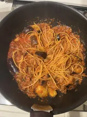 肉肉しいハンバーグが具沢山パスタに華麗に変身!残飯処理なんて思えないです。